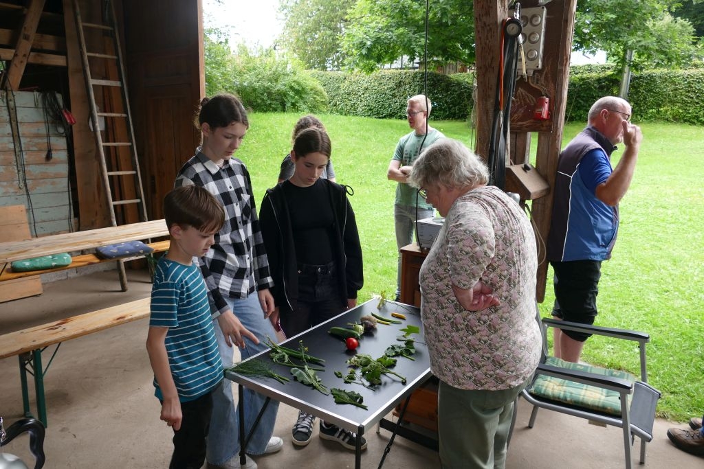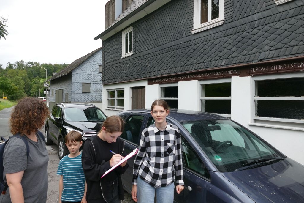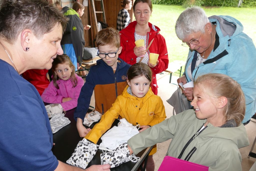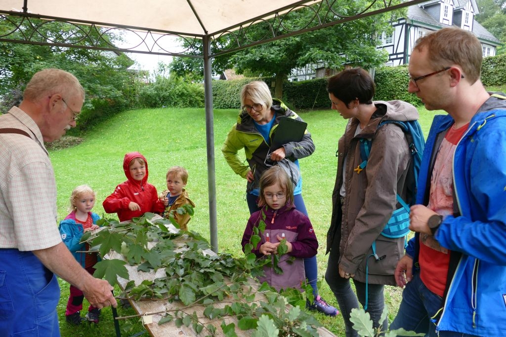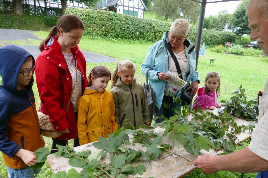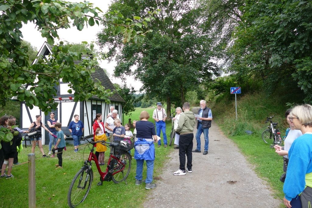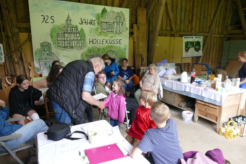 Der diesjährigen „Aktion für Kinder“ in Form einer „Dorferkundung“ war ein sehr schöner Erfolg beschieden. Zwar erwies sich der Termin in den Sommerferien nicht grade als günstig – etliche Kinder waren im Urlaub - gleichwohl kamen schließlich doch 17 Anmeldungen zusammen und auch das Wetter „spielte mit“: Zumindest beim Start am Backes war es noch trocken. In vier Gruppen erkundeten die Kinder in Begleitung ihrer Eltern oder Großeltern das Dorf, als „Leitschnur“ diente dabei ein Fragenkatalog, der die Gruppen auf verschiedenen Wegen zu einzelnen Stationen führte, zum Wasserrad, zum neuen Glockenturm, zum Bienenhotel am „Dudenberg“, zur Schmiede und zu vielen anderen interessanten Orten.
