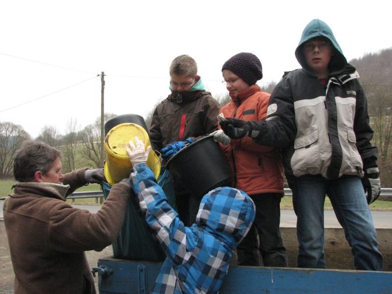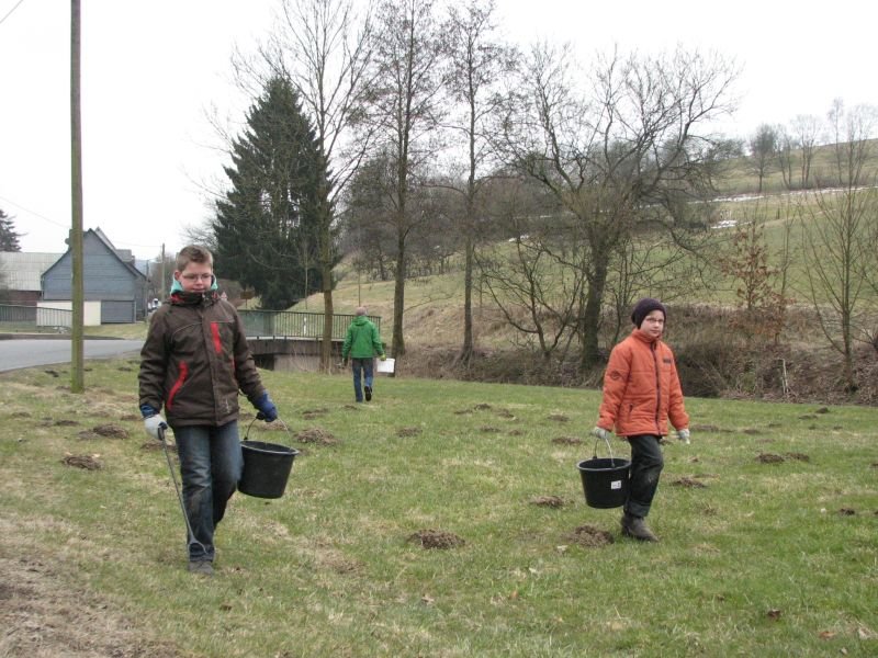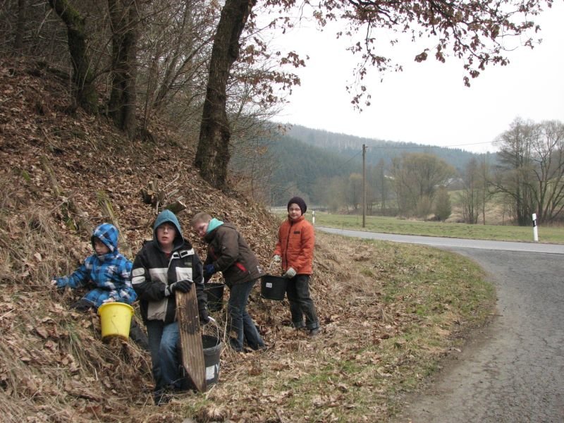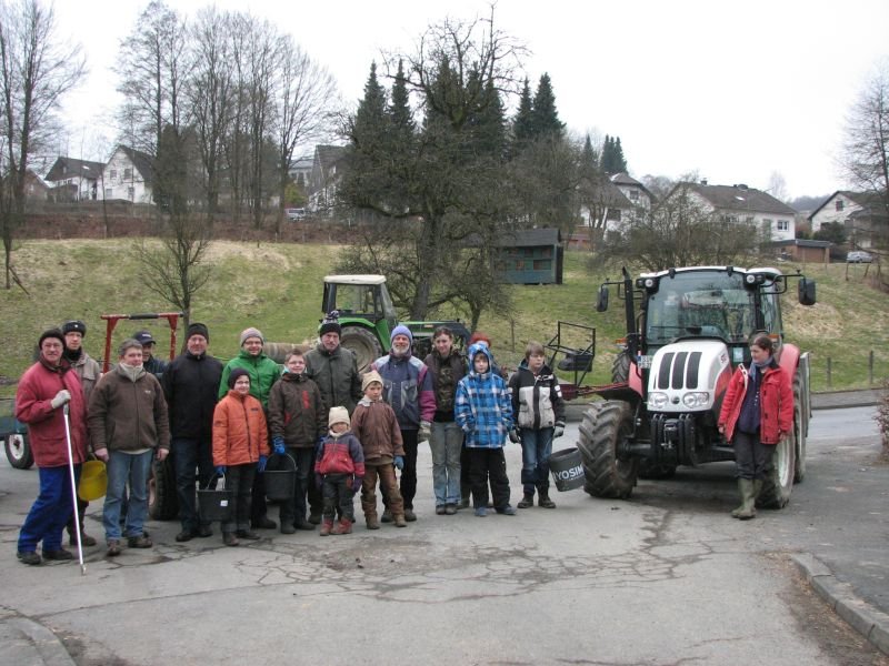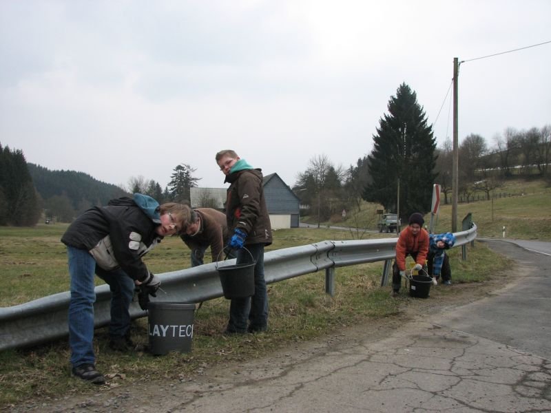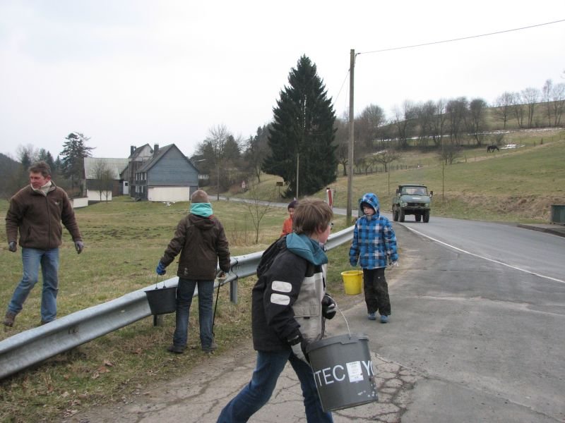 Zwar konnten in der Vergangenheit die meisten „Altlasten“ an Unrat bereits aus der Landschaft entfernt werden, gleichwohl summieren sich achtlos weggeworfene Zeitungen, Trinkbecher, Plastiktüten oder Flaschen von einem Frühjahr zum anderen immer wieder zu einer ganzen Wagenladung. Besonders schlimm trifft es die Umgebung der Verbindungsstraßen zwischen den Ortschaften: Die Entsorgung von Müll durch das geöffnete Autofenster scheint nach wie vor gängige Praxis zu sein. „Beim Spaziergang möchte ich die Natur genießen und mich nicht über den Abfall in der Landschaft ärgern müssen“ – so begründet Heiner Bald vom Arbeitskreis Dorferneuerung seine regelmäßige Teilnahme an der Aktion. Zu den eifrigsten Helfern zählen übrigens die Kinder. Aber nicht nur für sie, auch für die Erwachsenen ist die gemeinsame Arbeit ein Stück gelebter dörflicher Gemeinschaft. Bei heißem Kakao, Kaffee und Kuchen in „Gisselersch“ Scheune fand die Aktion ihren gebührenden Abschluss.