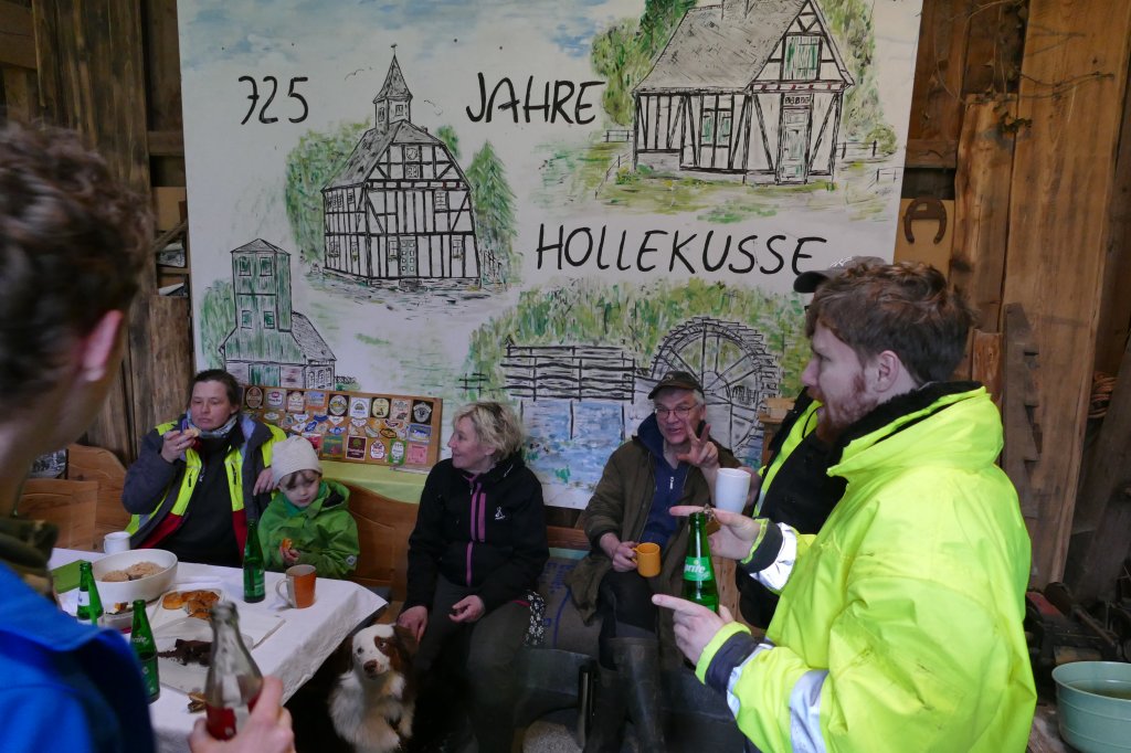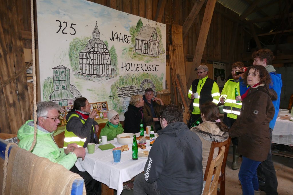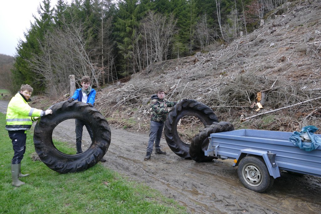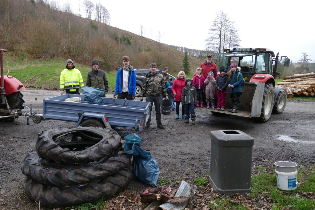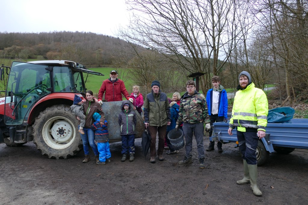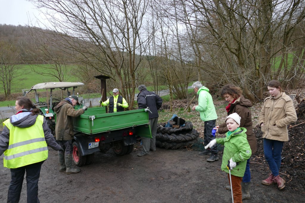 Gleichwohl wurde entschieden, an gesetzten Termin festzuhalten und das "war auch gut so": Trotz der schlechten Witterung fanden sich 27 Teilnehmer am Backes ein, dazu diesmal sogar vier Fuhrwerke! Mit den Helferinnen, die währenddessen mit der Vorbereitung des gemeinschaftlichen Kaffeetrinkens und der "Kuchenanfuhr" beschäftigt waren, kamen wir auf insgesamt 30 Teilnehmer (incl. eines Hundes &)! Ihnen allen ein herzliches Dankeschön den Fahrern, den Sammlern besonders den Kindern und den Kuchenbäckern! Die Möglichkeit, das gemeinsame Kaffeetrinken in "Gisselersch"-Scheune durchführen zu können, ist einfach schön auch dafür danke! Der gesammelte Müll wurde von Mitarbeitern der Stadt Siegen gleich am darauffolgenden Montag abgeholt.