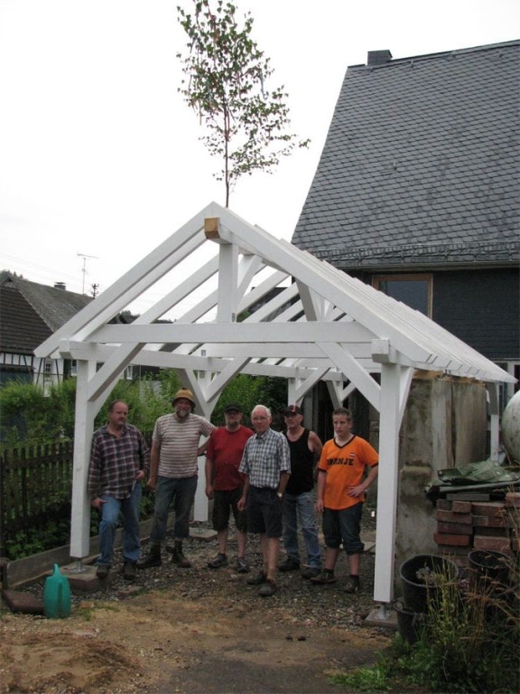 …Vielerorts sprießen sie aus dem Boden – die Carports als einfacher aber wirkungsvoller Schutz des Autos vor Regen und Schnee und zugefrorenen Scheiben. Dass auch Carports durchaus individuell und dennoch dorfgerecht gestaltet werden können, zeigt ein derartiger Neubau in der Holdinghauser Straße. Mitglieder des Arbeitskreises standen dem Bauherrn bei der Planung und Ausführung des Projekts zur Seite.