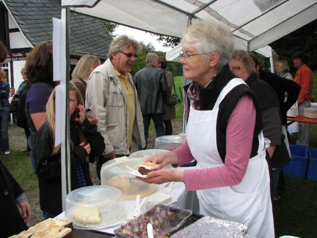 „Die Milch macht`s …“ lautete der Titel einer Dokumentation zur Geschichte und Gegenwart der Milchviehhaltung und Milcherzeugung im Dorf, in einer dazu gehörigen Ausstellung waren zahlreiche historische Gerätschaften zu betrachten – vom Melkschemel über die verschiedenen Zentrifugen bis hin zum elektrisch betriebenen Butterfass. Ihre aktuellen und historischen Kenntnisse konnten die Festteilnehmer in einem Quiz unter Beweis stellen. Derweil waren die Kinder erfolgreich damit beschäftigt, in einem Malwettbewerb die schönste Kuh im Dorf bildlich festzuhalten oder sich darin zu üben, die Kuh „Yvonne“ zu füttern und zu melken. Letztere erwies sich dabei als überaus geduldig, so wie man es von einer Kuh aus Holz auch erwarten kann … ! Neben Gesprächen in der beschaulichen Umgebung des Backhauses nahmen viele Gäste die Gelegenheit wahr, sich über die Aktivitäten des Arbeitskreises in und für Langenholdinghausen genauer zu informieren: Unter der Überschrift „Dorferneuerung – der Heimat eine Zukunft geben“ hatten die Mitglieder der Gruppe ihre Ziele und vielfältigen Aktivitäten aus den Bereichen Ortsbildgestaltung, Erhalt des kulturellen Erbes, Naturschutz und Förderung des Gemeinschaftslebens in Wort und Bild anschaulich dargestellt.