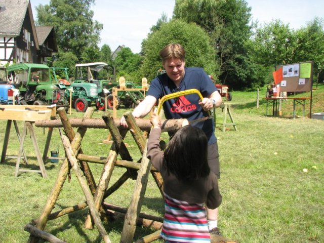 Ob beim „Zwergenkegeln“, bei Wurfspielen, am Nagelbalken oder am Sägebock – beim Backesfest am „Zinnwald“kam bei den jungen Gäste keinerlei Langeweile auf. Gleichwohl war auch für die Erwachsenen sowohl mit „kulinarischen“ als auch „technischen Leckerbissen“ bestens gesorgt: