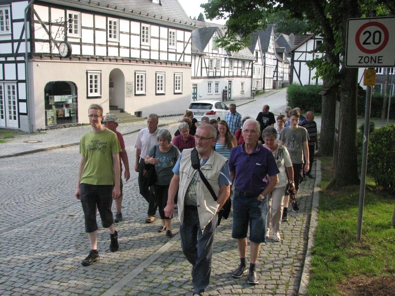 Vom Kurpark aus bot sich der Gruppe der eindrucksvolle „Fotoblick“ auf das unvergleichliche Fachwerkensemble. Danach ging es durch die Gassen – immer wieder unterbrochen von Anekdoten und historischen Informationen zur Geschichte Freudenbergs. Viele der besuchten Orte hatten die Helfer vom Arbeitskreis zuvor noch nie gesehen – umso mehr zeigten sich die Teilnehmer von der Führung und den kurzweiligen Erläuterungen des 80jährigen Führers begeistert. Den Abschluss des Besuchs in Freudenberg bildete ein gemeinsames Abendessen im Gasthof „Zum alten Flecken“.