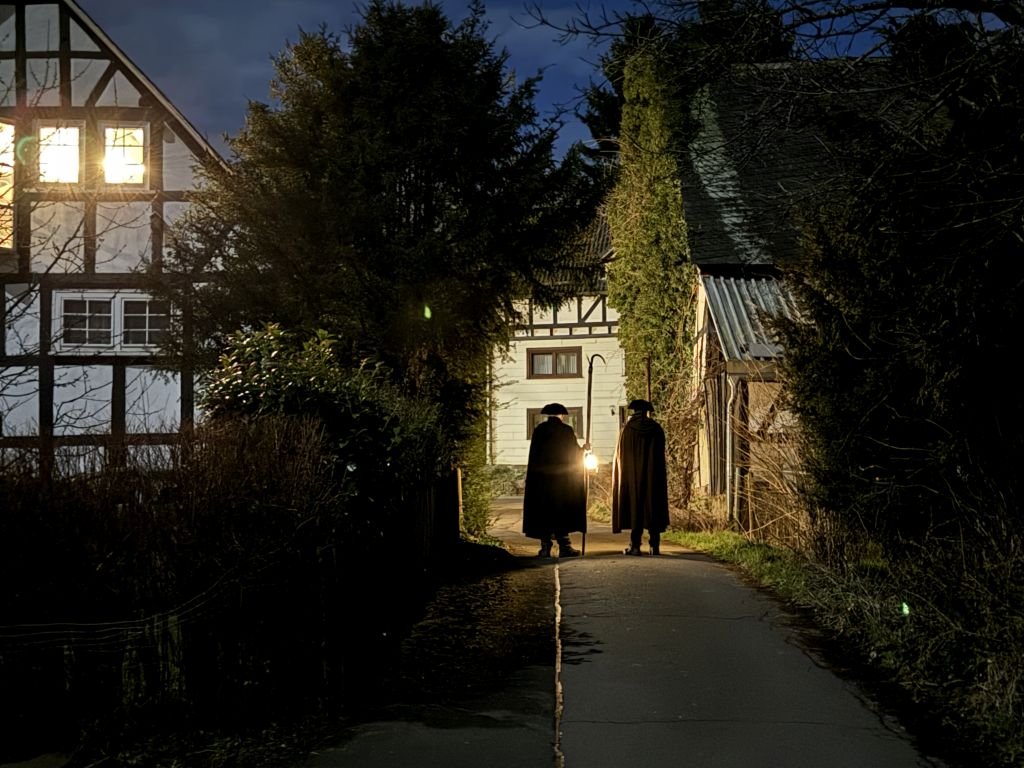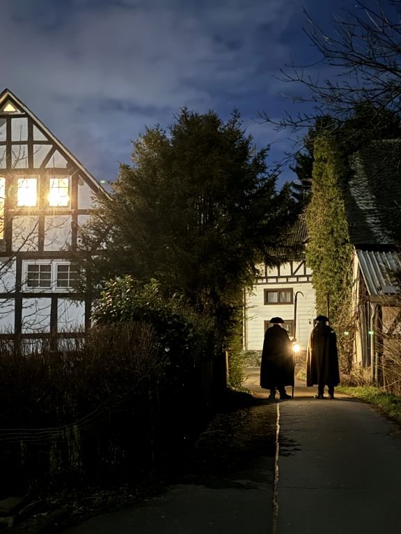 Der dem am 23. Febr. 2024 durchgeführte „Rundgang mit dem Nachtwächter durch das alte Hollekusse“ war der dritte Rundgang dieser Art. Erneut waren es 32 Personen, die sich vom Nachtwächter und der ihn begleitenden Beiwache in authentischer Kleidung und Ausstattung in die Vergangenheit des Dorfes „entführen“ ließen.