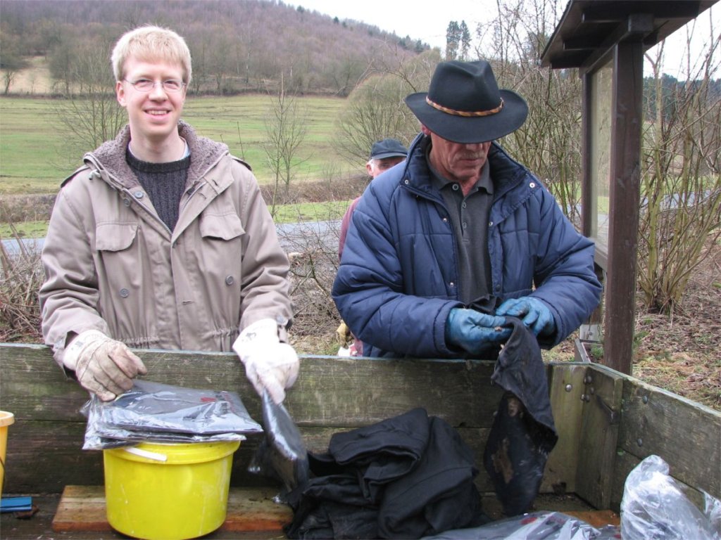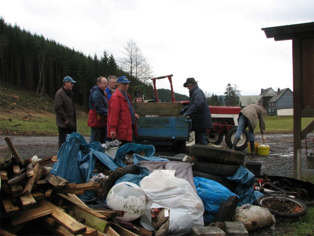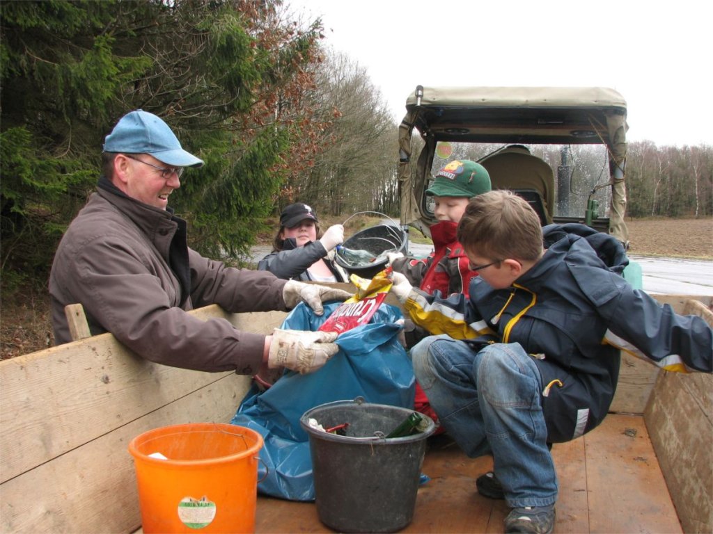 Der Heimatverein organisiert die Säuberung der Landschaft in den südlichen Teilen der Flur, der Arbeitskreis ist für die nördlichen Bereiche zuständig. Nach getaner Arbeit ging es dann gemeinsam an die reichlich gedeckte Kaffeetafel – diesmal in der Heimatstube in der ehemaligen Schule am Fußfeld. Obwohl die „Aktion saubere Landschaft“ im Terminkalender von „Hollekusse“ seit mehr als 15 Jahren ihren festen Platz hat, bleibt die Reinigung der dörflichen Flur eine Daueraufgabe: Ob Flaschen aus Glas oder Kunststoff, Verpackungen aller Art, Reifen oder defekte Schirme – all das summiert sich jedes Jahr aus neue zu ganzen Wagenladungen. Zu einer wahren Plage sind mittlerweile die Papiertaschentücher geworden. Sie gelten bei manchem Zeitgenossen offenbar als „Wegwerfprodukt“ im wörtlichen Sinne und begleiten die Müllsammler auf Schritt und Tritt. Es mag sein, dass die weißen Flecke im Gras nicht das größte ökologische Problem für unsere Landschaft ausmachen – ein Ärgernis für jeden Naturfreund sind sie allemal !