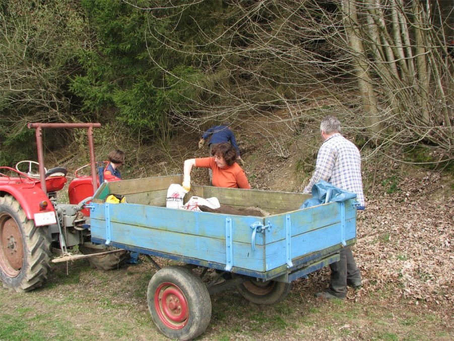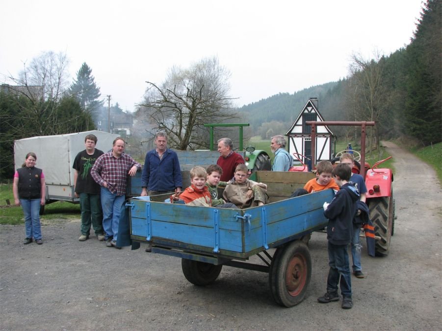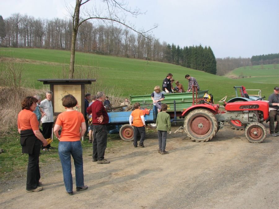 Insgesamt 25 Helfer trafen sich am Samstag, dem 4. April 2009, am alten Spritzenhaus um gemeinsam die nördlichen Bereiche der dörflichen Flur von allerlei Unrat zu befreien. Verteilt auf drei Gruppen mit je einem Traktor und Anhänger wurden Straßen und Wege nach einem zuvor festgelegten Plan abgefahren und der angetroffene Unrat " von der Schnapsflasche über Drahtrollen bis hin zum preiswert entsorgten Bauschutt " auf die Wagen gepackt. Schon in den Wochen zuvor hatte Martin Bald viele der noch immer in der Gemarkung zu findenden Altlasten in Form von verrosteten Blechen oder Weidezaundraht zusammengetragen und an den Wegen zwischengelagert die Abfuhr der Materialien wurde dadurch sehr erleichtert.