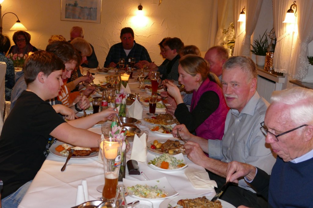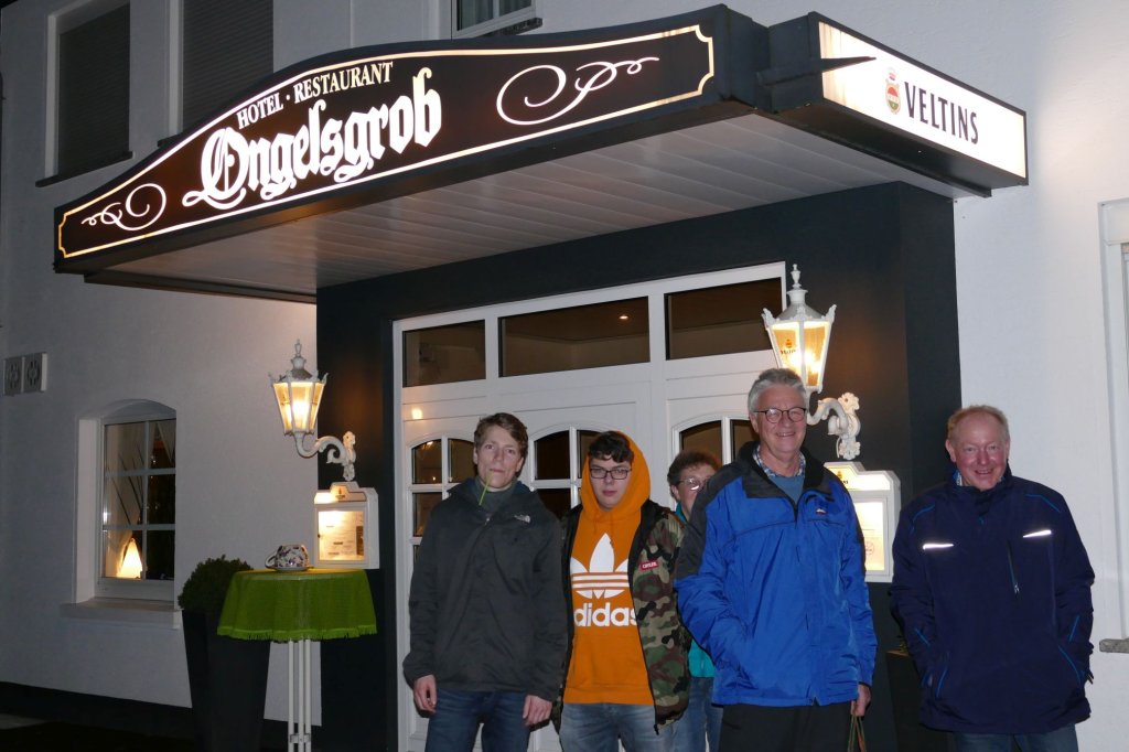 Am Freitag, dem 31. Jan. 2020, traf sich hierzu ein Großteil unserer Gruppe um 18.00 Uhr bei Kolwe, um von dort aus durch den Grümmel und über den Hohlenborn nach Buchen zum Gasthof Ongelsgrob zu wandern. Dort wurden die Wanderer bereits von anderen Gruppenmitgliedern erwartet, die mit dem PKW nach Buchen gekommen waren. Nach einem vortrefflichen Abendessen ließ man anschließend die Aktivitäten des nunmehr vergangenen Jahres in Wort und Bild Revue passieren, von der Aktion saubere Landschaft über die Aktion für Kinder (Bau von Insektenhotels) und das Backesfest bis hin zur erst kürzlich im Dorfgemeinschaftshaus durchgeführten Lechdschdonn. Durch eine herrlich sternenklare Nacht ging es später zurück ins heimatliche Dorf.