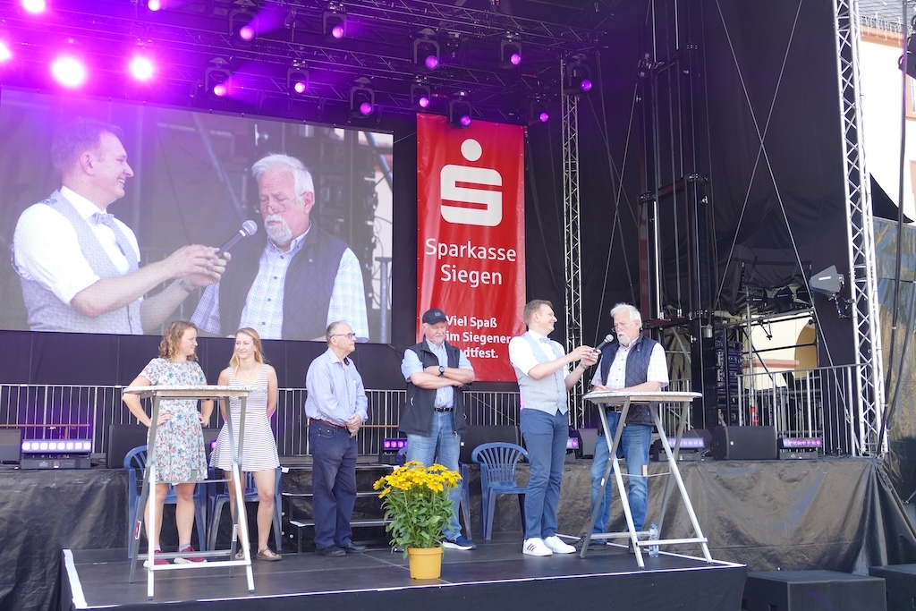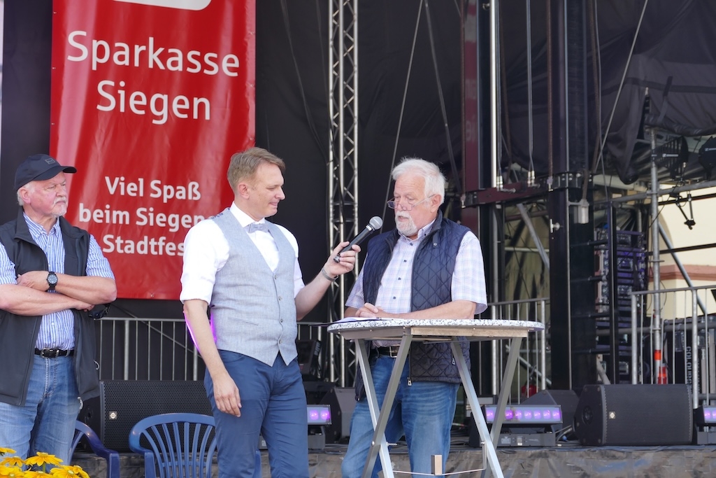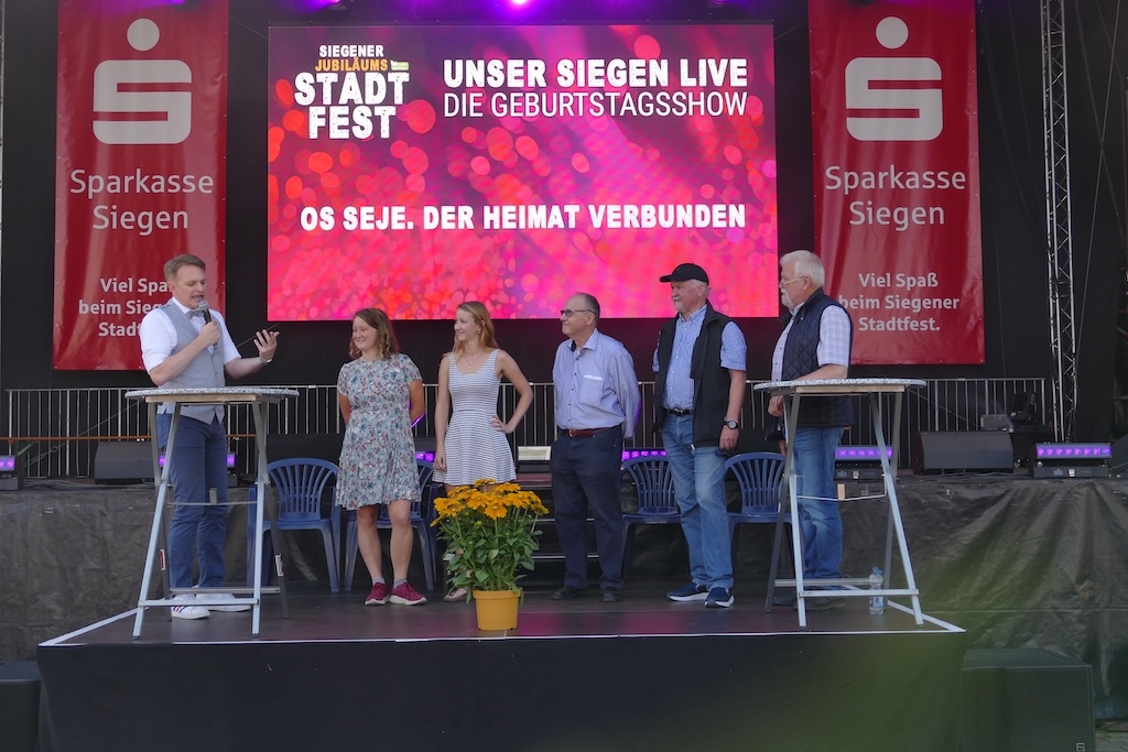 Im Rahmen einer Veranstaltung zur 800-Jahrfeier der Stadt Siegen fand am 31. Aug. 2024 unter dem Thema „Unser Siegen LIVE“ eine „Geburtstagsshow“ im Hof des Unteren Schlosses statt. Dazu waren auch fünf Preisträger des Siegener Heimatpreises eingeladen, die über ihre Projekte berichteten.