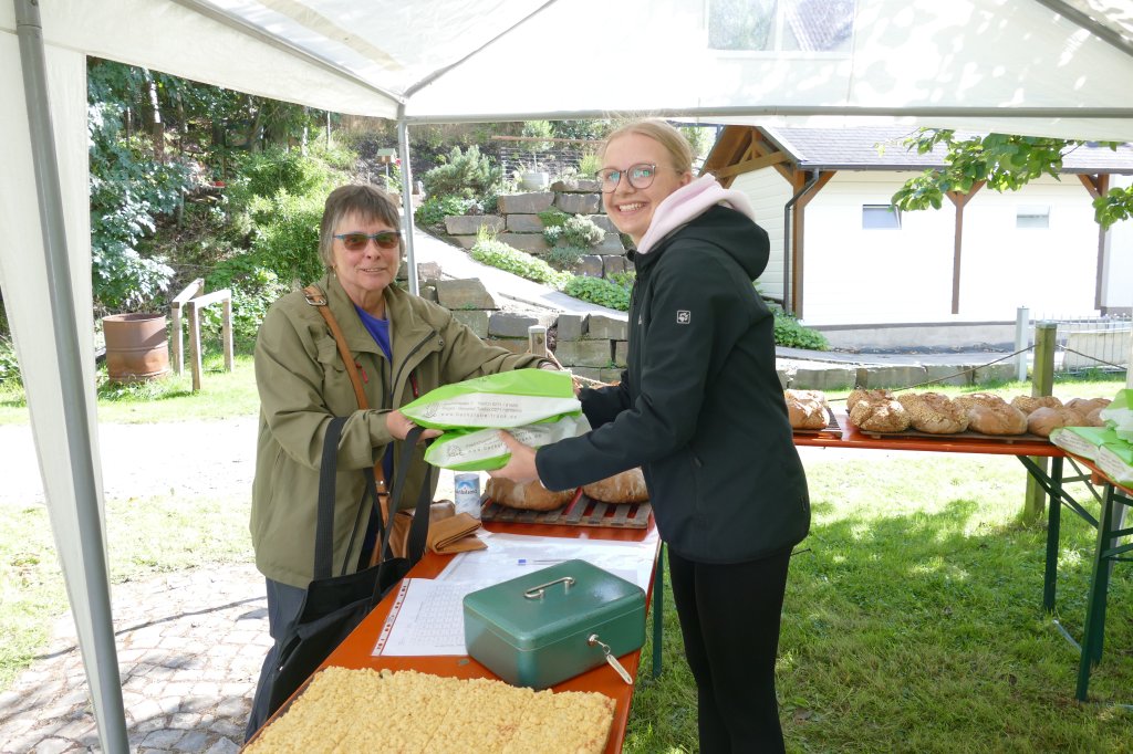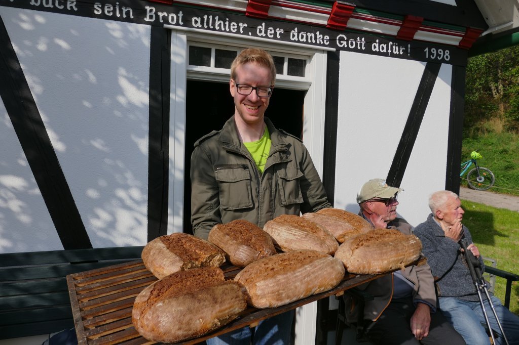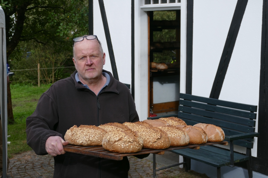 Der Herbstbacktag am 23. Sept. 2023 verlief bei recht angenehmer Witterung wieder sehr erfolgreich: Es wurden insgesamt 256 Brote gebacken, dazu vier Bleche Streuselkuchen. Erneut erwies sich unsere "Brotkundschaft" als sehr zuverlässig, nur drei Parteien versäumten die Abholung ihrer "Backwaren". Gleichwohl blieb nichts übrig, alle Brote fanden ihre Abnehmer.
