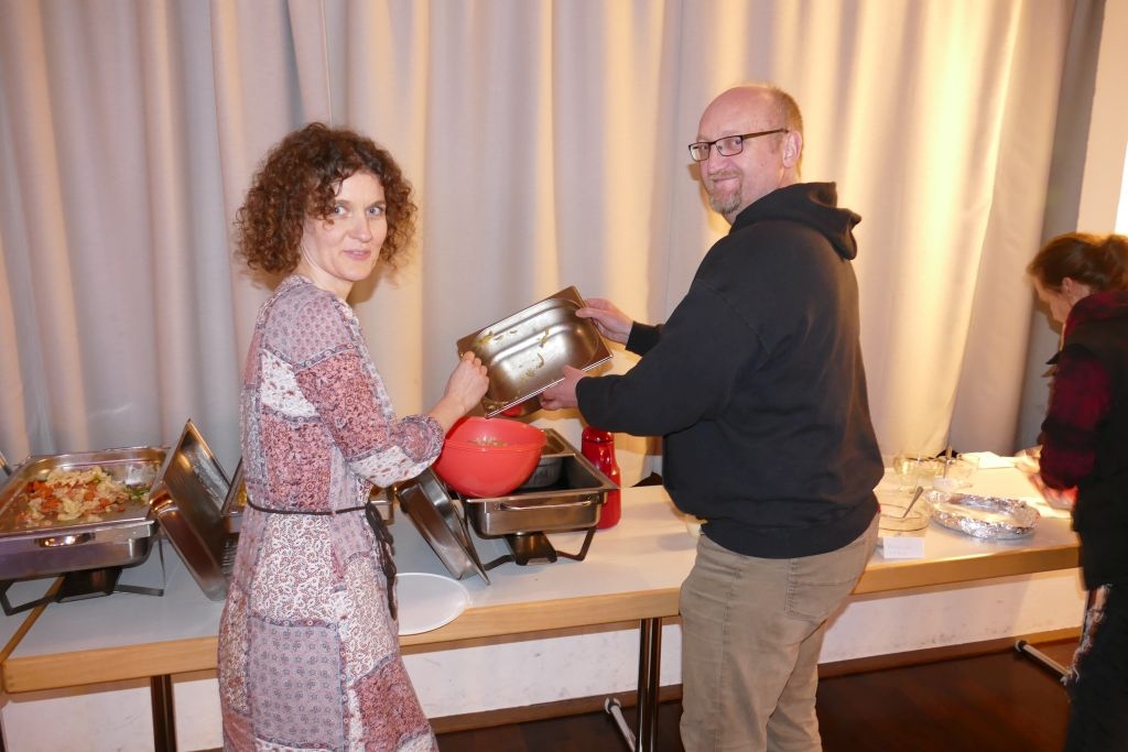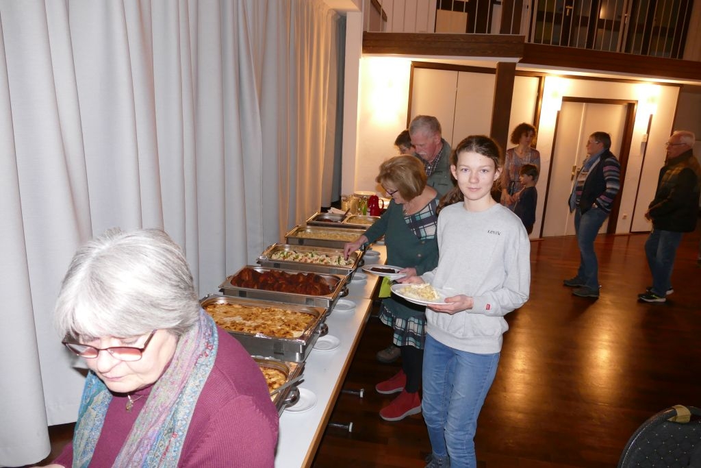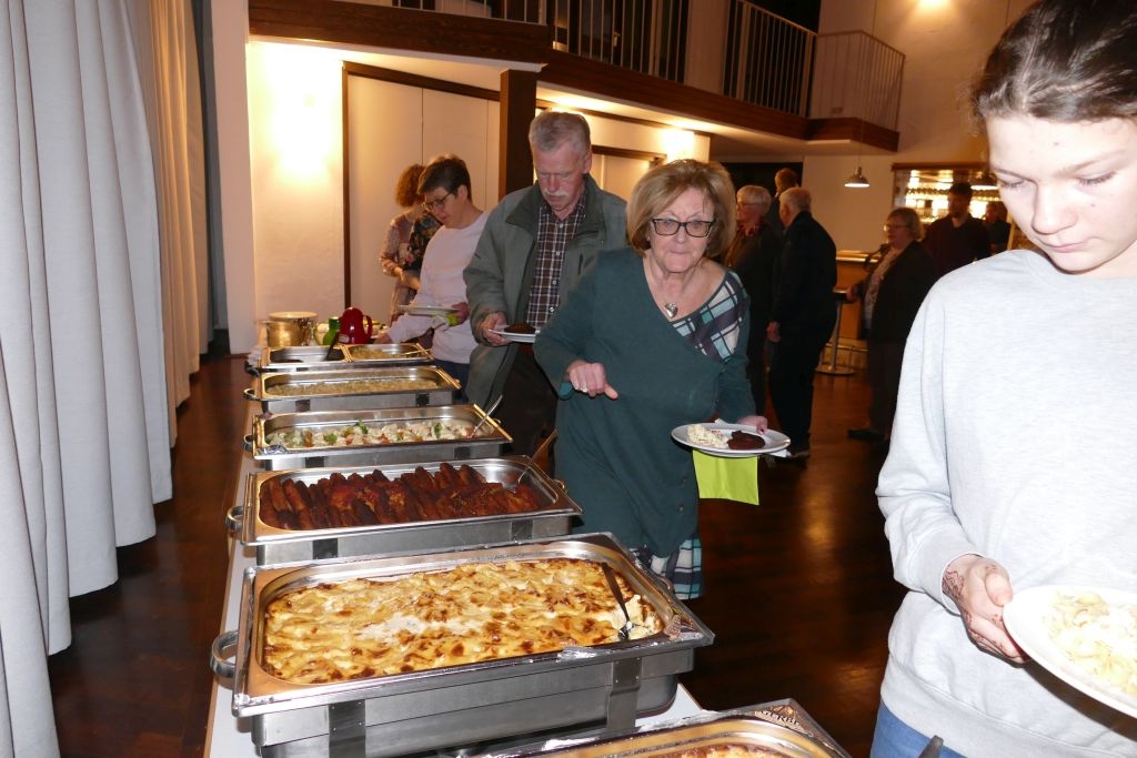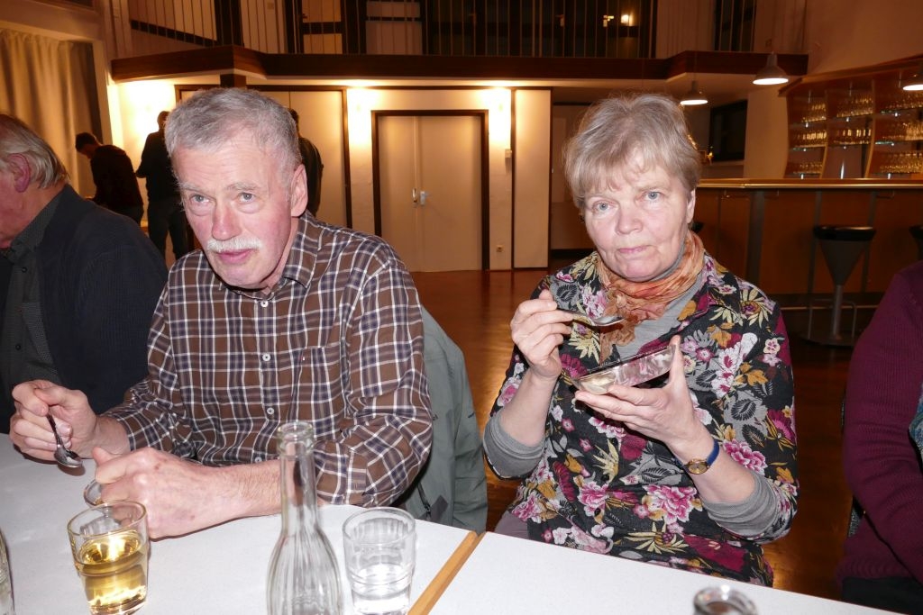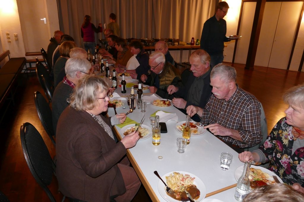 Der vorausgegangenen Wanderung durch die heimischen Fluren war indes nicht allzu viel Positives abzugewinnen, um die Wanderer war es rundherum feucht, von oben und auch von unten! Nichtdestotrotz kamen die Teilnehmer halbwegs pünktlich im DGH an, um sich mit den anderen, dort schon eingetroffenen Mitgliedern am bereits aufgebauten Buffet gütlich zu tun. Nach dem gemeinsamen Essen erfolgte ein Jahresrückblick in Wort und Bild. Anhand zahlreicher Fotos und Filmmitschnitte (Adventliches Konzert / Vortrag zur Vertreibung) ließ der Verein die Aktivitäten des Jahres 2022 Revue passieren. Die Teilnehmer erfreuten sich zudem an einem von Robin Ohrndorf unter Verwendung seiner Drohne gedrehten interessanten Kurzfilm über Langenholdinghausen. Daran schloss sich der formale Teil der Jahreshauptversammlung an, mit der Vorstellung aller laut Satzung vorzutragenden Berichte und der Wahl des Vorstandes und der Kassenprüfer.