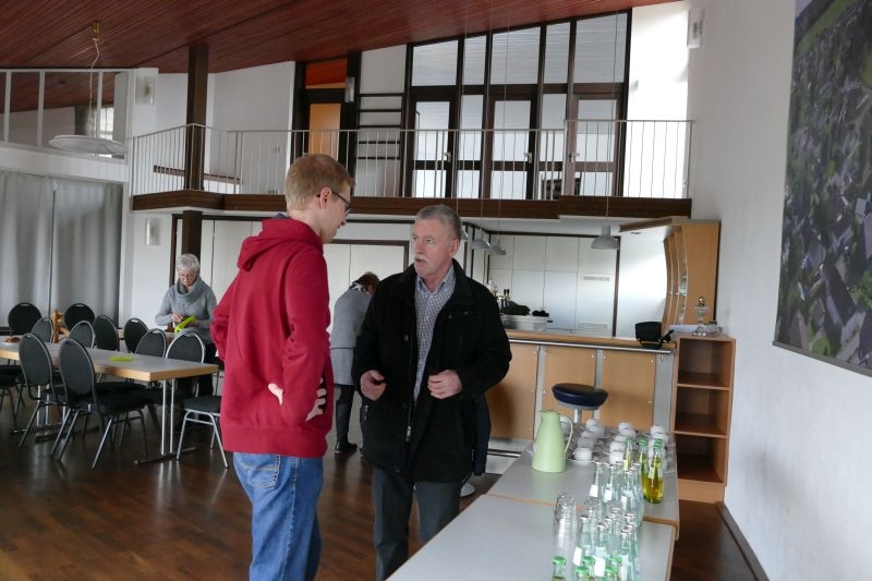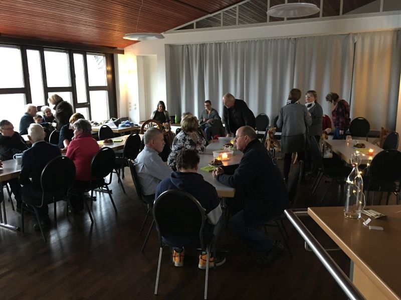 im Dorfgemeinschaftshaus am Altenberg am Sonntag, dem 26. Januar 2020. Gut 40 Gäste – jung und alt – folgten der Einladung und saßen bei Kaffee, Tee, Kuchen und Kerzenschein beieinander , um sich die Anekdoten und Erzählungen der anderen anzuhören. Diese wurden teilweise auf Siegerländer Platt zum Besten gegeben, was allerdings auch schon mal zu Fragezeichen in den Gesichtern derjenigen führte, die des „Plattdeutschen“ nicht ganz mächtig waren. Zum Glück aber saßen jede Menge „Dolmetscher“ im Raum. Da ging es um Geschichten aus der Zeit der Großväter und Urgroßväter, der Großtanten und Urgroßtanten. Um deren Essgewohnheiten, um Sitten und Bräuche, um Verbindungen des Dorfes in die Ferne in früherer Zeit, kurzum: Um eine kulturelle Erlebnisreise in die Vergangenheit. Fünf Frauen hatten ihr Spinnrad mit zur „Lechdschdonn“ gebracht und zeigten den Besuchern, wie durch Zieh- und Drehtechniken aus loser Wolle ein Faden gesponnen werden kann. Von Webmeisterin Inge Zöller erfuhr das interessierte Publikum, welch großen Stellenwert das Spinnen und Weben früher im Leben der Menschen innehatte, wie und warum sich das Spinnen in zahlreichen Märchen niederschlug und wie viele Redewendungen und Begriffe in der Tätigkeit des Spinnens und Webens ihren Ursprung haben. „Den Bogen raus haben …“, „den Faden verlieren“, „überdreht sein …“, „sich etwas zurecht spinnen …“ – all diese Aussagen lassen sich auf das Spinnen und Weben zurück führen. So geriet die „Lechdschdonn“ zu einer entspannten und zwanglosen Zusammenkunft, die womöglich im nächsten Jahr erneut angeboten wird.