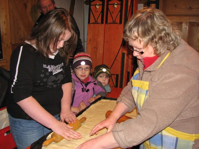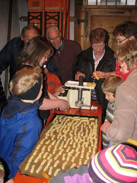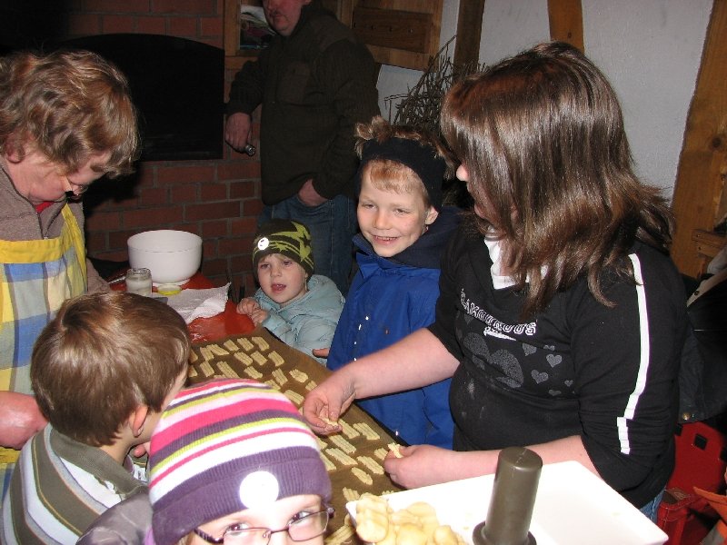 „In der Weihnachtsbäckerei …“ – an das Lied von Rolf Zuckowski  fühlten sich all jene erinnert, die am 5. Dezember 2009 das Backhaus am Zinnwald aufsuchten. Jung und alt waren gleichermaßen begeistert dabei, Teig in den Fleischwolf zu geben und die Plätzchen auf den großen schwarzen Backblechen zu „positionieren“.