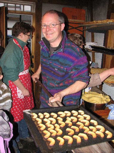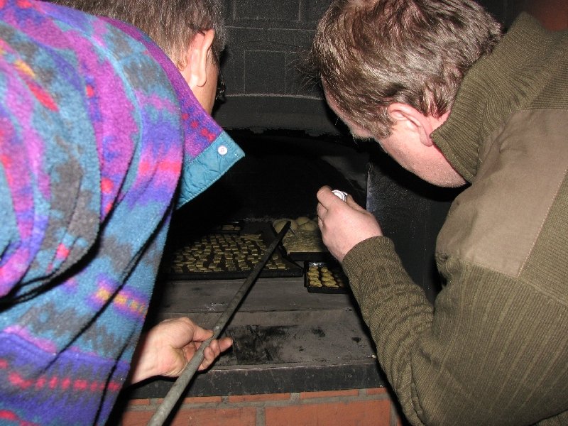 Einmal mehr zeigte es sich, dass sich im steinernen Backofen nicht nur gutes Brot, sondern auch süßes Naschwerk vorzüglich backen lässt. Damit sich das Aufheizen des Backes so richtig lohnte, wurden an diesem Tag aber nicht allein die verschiedensten Plätzchen, sondern vorab auch noch mehrere Bleche mit Streusel- und Mandelkuchen in den Ofen geschoben. Mit dem gemeinsamen Plätzchenbacken fanden die Aktivitäten des Arbeitskreises im Jahr 2009 einen stimmungsvollen Abschluss.