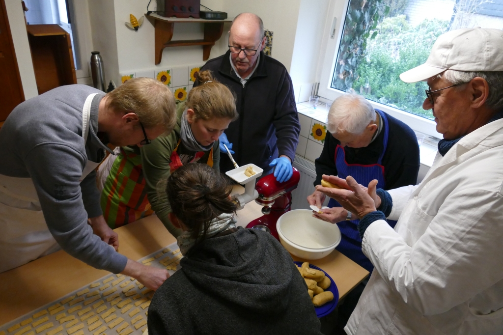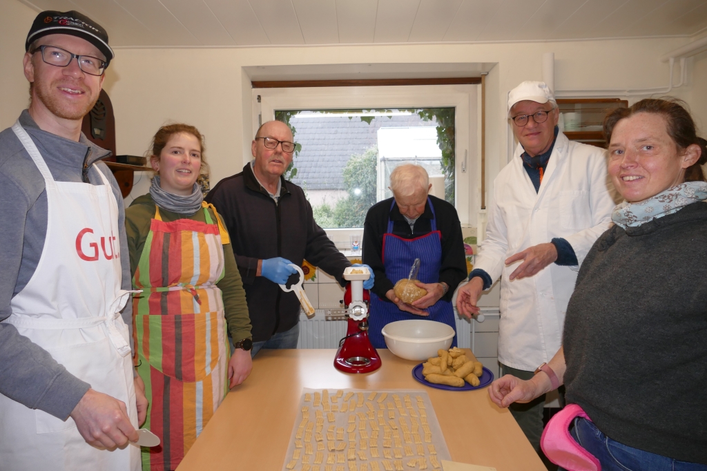 Von der Teigzubereitung über das Durchdrehen des Teiges in der Bienenküche bei Schusdersch über das Backen bis hin zum Eintüten der Plätzchen klappte alles hervorragend  alle Arbeitsabläufe, aber auch die helle Bräune und ebenso der Geschmack der Plätzchen waren perfekt. Der Plätzchenteig war wieder dezentral vorbereitet worden: Neun Mitglieder des Vereins hatten sich dazu bereit erklärt, den Teig unter Verwendung von jeweils 1 kg Mehl vorzubereiten. Insgesamt 32 älteren Mitbürgern von Hollekusse wurde auch in diesem Jahr eine Tüte mit Plätzchen und einem vorweihnachtlichen Gruß vom Arbeitskreis zugestellt. Dabei führten unsere Plätzchenverteiler auch das eine und andere kurze Gespräch mit den Adressaten, was diese auch erfreute. Am darauffolgenden Sonntag dem 11. Dez. 2022, wurden im Backes zudem Stutenmänner gebacken, die während des anschließenden Konzerts begeisterte Abnehmer fanden.