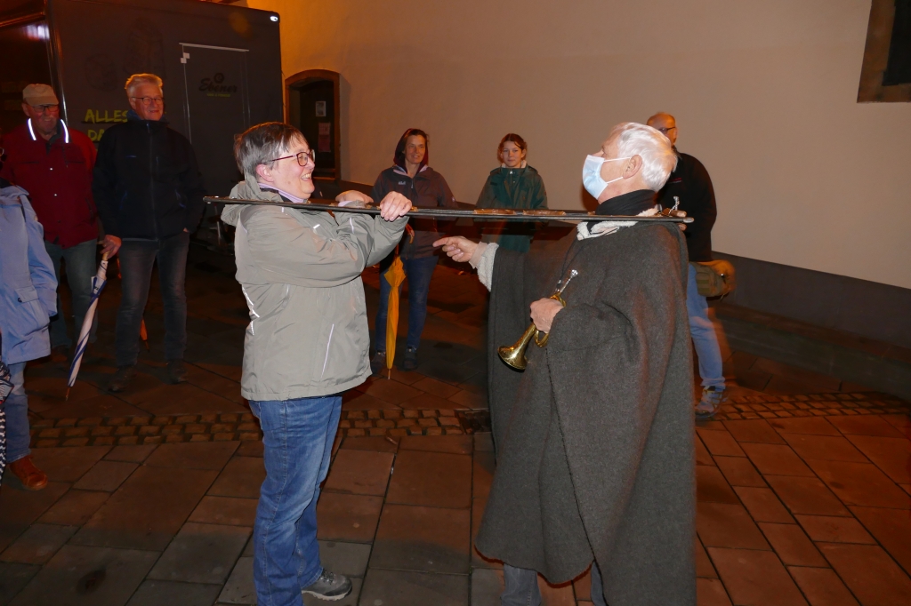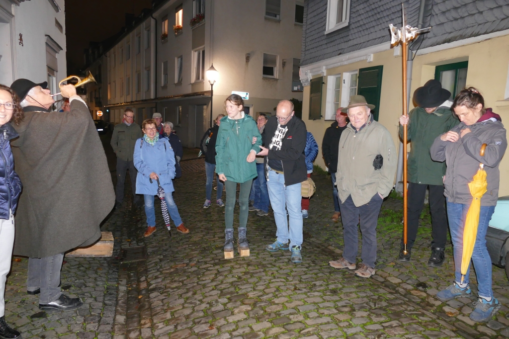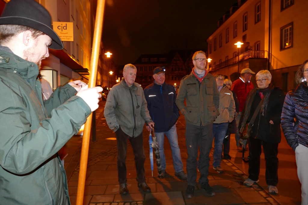 Am Freitag, dem 4. Nov. 2022, unternahmen Mitglieder und Freunde des Arbeitskreises einen Abendlichen Rundgang mit dem Nachtwächter durch die Siegener Altstadt.