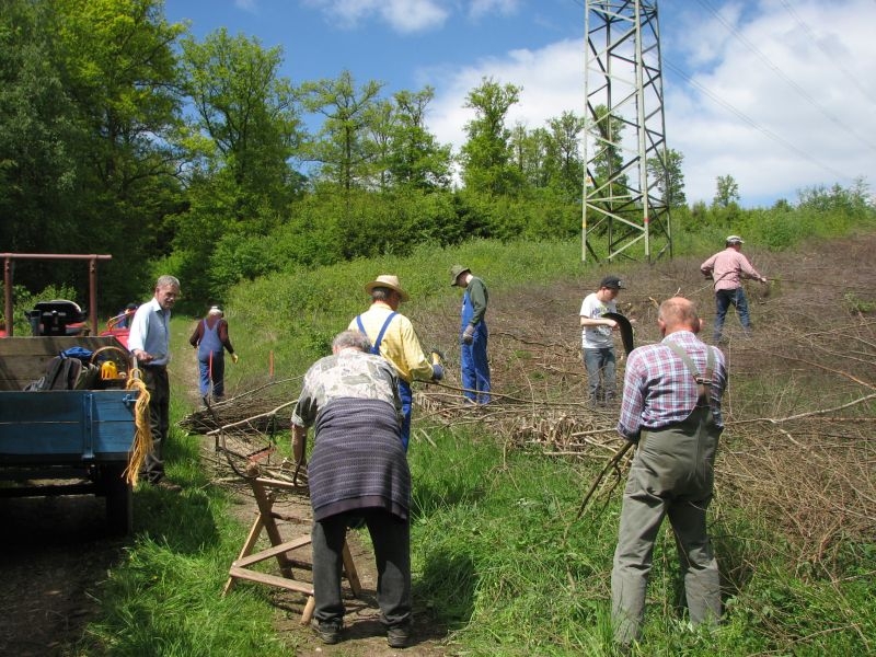 Die Ergänzung der Schanzenvorräte hat im Arbeitsplan des Arbeitskreises Dorferneuerung stets ihren festen Platz. Geeignetes Gehölz für gut brennende Schanzen fand sich auch diesmal wieder auf den Flächen unter der Hochspannungsleitung am „Goldseifen“.