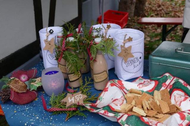 Das Wetter stimmte und die Zahl der Besucher war so hoch wie noch nie. Die von unseren Helferinnen vorbereiteten und vom Backteam gebackenen schmackhaften Stutenmänner waren schnell vergriffen, die Plätzchen ausverkauft und weder vom Kaffee noch vom heißen Kakao (mit Schuss...) blieb etwas übrig. Bemerkendwert auch die große Zahl der Kinder am Backes zu überlegen wäre, ob nicht der Chor zukünftig auch für diese das eine oder andere Lied vortragen könnte. Auch der von einem fleißigen Helferkreis vorbereitete Verkaufsstand mit gebastelter Dekoration und zur Weihnachtszeit passenden Leckereien bereicherte die Veranstaltung, dazu ein weiterer Tisch mit Dekoartikeln, die gegen eine Spende abgegeben wurden. Allen am Stand und den Vorbereitungen Beteiligten ein großes Lob und ein Dankeschön! Der Blick in die beim Konzert für Gebäck und Mitbringsel aufgestellte Spendenkanne förderte überaus Erfreuliches zu Tage, die eingegangenen Spenden wurden der Palliativstation des Jung-Stlling-Krankenhauses übergeben.