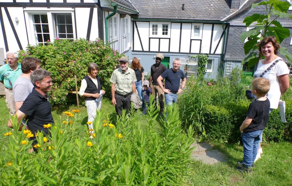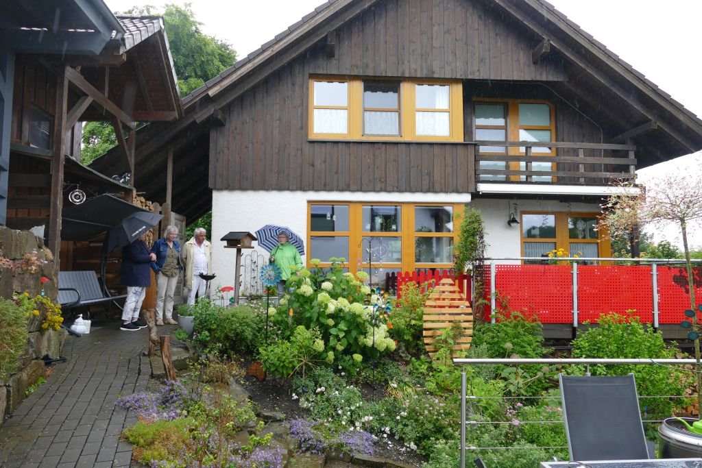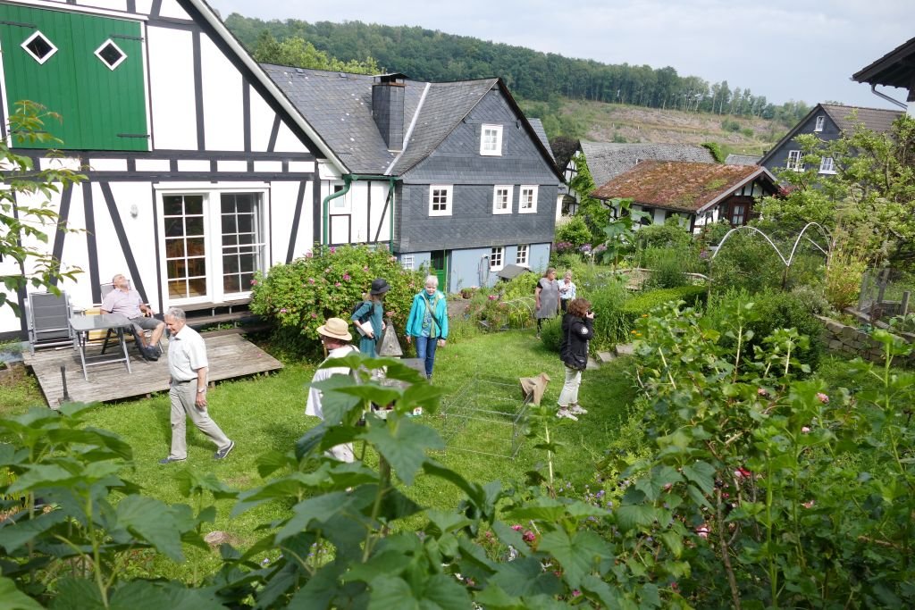 Andererseits hat sich auch in Langenholdinghausen während der vergangenen Jahrzehnte das Bild der Gärten deutlich verändert: Gemüsegärten sind mittlerweile nur noch selten zu finden, der kurz geschorene Rasen hat zugenommen. Schotter- und Steinflächen im Umfeld der Häuser bilden glücklicherweise noch die Ausnahme. Zudem hinterlässt der demografische Wandel auch in den Gärten seine Spuren. Mit dem Hinweis „Ein gärtnerisches Juwel im Wandel“ deutete ein schon älteres Ehepaar an, dass sich seine bisher sehr gepflegte Gartenanlage verändert. Alters- und gesundheitsbedingt kann sie nicht mehr so betreut werden, wie es bisher der Fall war. Doch auch von diesem Garten, wo die „Natur“ gegenüber dem „Gärtner“ jetzt stellenweise die Oberhand gewinnt, zeigten sich die Besucher begeistert.