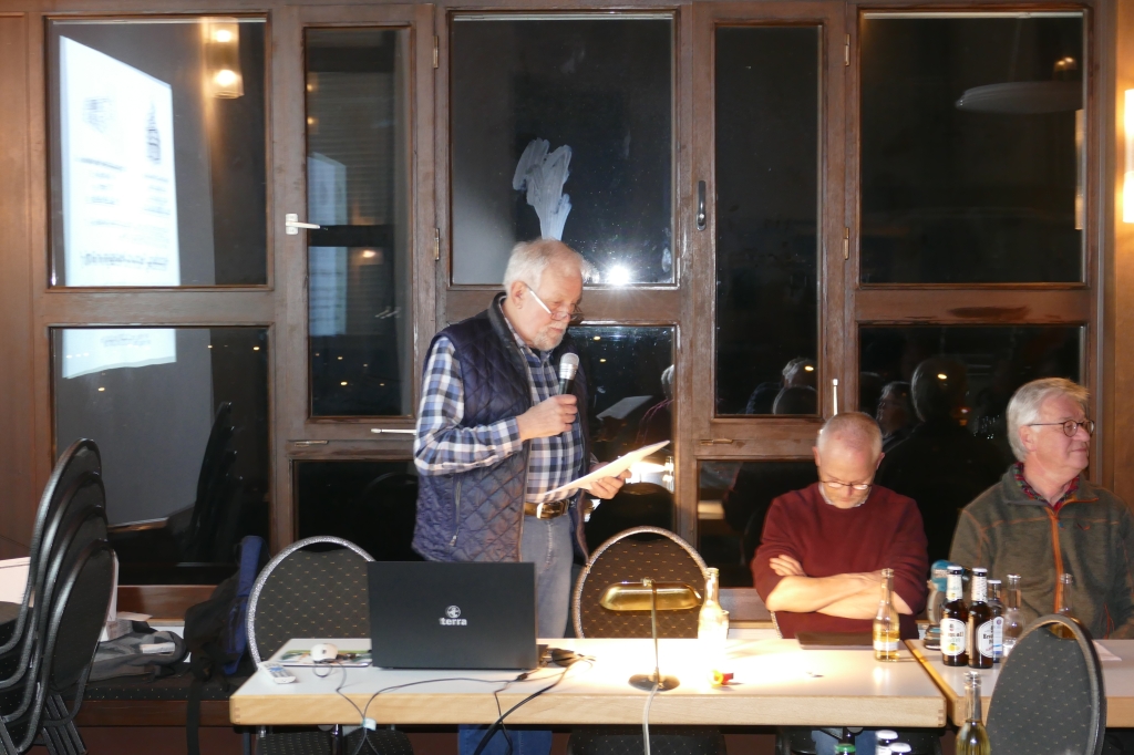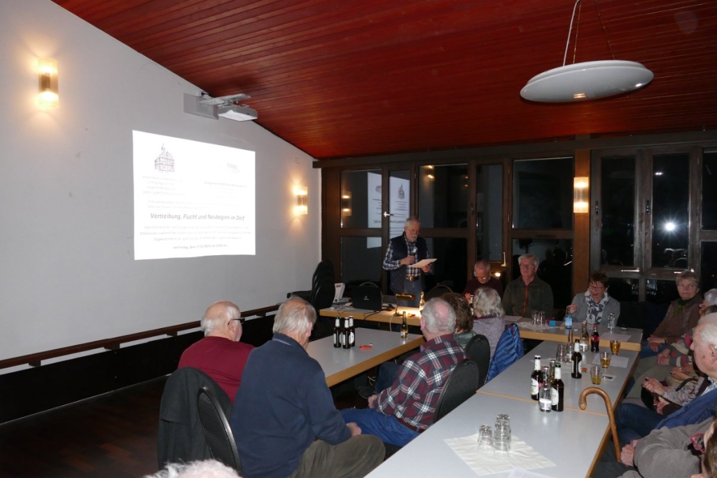 Das große Interesse an der Thematik bewiesen die bis auf den letzten Platz besetzten Reihen der Zuhörer, darunter auch etliche, die als junge Leute das Los der Vertreibung am eigenen Leibe erlebt hatten.Ortschronist Ernst-Otto Ohrndorf beschrieb zunächst die Situation im Dorf nach Kriegsende: Die meisten der wegen der Bombenangriffe auf größere Städte, wie z. B. Siegen, in Langenholdinghausen untergebrachten „Evakuierten“ waren schon bald in ihre Häuser zurückgekehrt. „Doch dann, in der ersten Hälfte des Jahres 1946“ – so ein Vermerk in der Schulchronik des Ortes - „setzte der Strom der Ostvertriebene ein, die von den Polen aus ihrer Heimat ausgewiesen worden waren“. In Langenholdinghausen fanden insgesamt 104 Vertriebene Unterkunft, einige zeitweilig, andere auf Dauer. Stellvertretend für diese 104 Schicksale bildeten vier persönliche Berichte von Vertriebenen – vom Chronisten schon vor Jahren in Gesprächen aufgezeichnet – einen Schwerpunkt der Darstellungen. Die von zwei Frauen und zwei Männern des Arbeitskreises in der „Ich-Form“ vorgetragenen Berichte ließen die Erlebnisse von Vera Pahl, Margarete Seeliger, Rudolf Stähler und Ernst Drescher während ihrer Flucht vor den Augen der Zuhörer lebendig werden. Auf unterschiedlichen Wegen und unter unterschiedlichen Bedingungen waren die vier Personen und deren Familien infolge der „wilden Vertreibung“ noch während der Kriegshandlungen und der vermeintlich „geregelten Vertreibung“ in der Nachkriegszeit nach Langenholdinghausen gekommen. Ihnen gemeinsam sind die bei der Flucht ausgehaltenen Entbehrungen und Schrecken, die Bedrohungen, das zwangsweise Erduldete und die erlittenen Todesängste. Von den Zuhörern wurden die Berichte mit Betroffenheit und Erschütterung aufgenommen. Im Weiteren berichtete der Ortschronist von der Aufnahme der Ostvertriebenen im Dorf, wie der Gemeindevorsteher Karl Bender die Aufgabe der Zuweisung der Angekommenen in die einzelnen Häuser vorbildlich bewältigt hatte und zu welchen, für heutige Verhältnisse geradezu unvorstellbaren Beeinträchtigungen der Wohnverhältnisse es durch die Aufnahme der Vertriebenen sowohl für diese als auch für die Ortsansässigen kam. Auch Letztere hatten durch den Krieg gelitten, 37 Männer des Dorfes waren gefallen oder galten als vermisst, in einigen Familien der einzige Sohn. Bei den Ostvertriebenen war das ebenso, darüber hinaus hatten sie ihre Heimat und ihren ganzen Besitz verloren, ihre Lebensplanung war zunichte gemacht und das gesamte soziale Umfeld zerstört. Familien, Verwandte und Nachbarn waren auseinandergerissen, deren Schicksal oft unbekannt. Da bedrückte es umso mehr, dass die Vertriebenen von einem Teil der Ortsansässigen als „Fremde“ betrachtet wurden, die „einfach nicht hierhergehörten“. Zwar erwarben sich schon bald etliche der „Neubürger“ aufgrund ihrer Zuverlässigkeit und Tüchtigkeit die Anerkennung der Ortansässigen, gleichwohl blieb der Begriff „Flüchtling“ für lange Zeit ein Synonym für Menschen „zweiter Klasse“, für Menschen, „die nichts hatten, aber alles haben wollten“. „Doch wie immer im menschlichen Miteinander“ – so der Chronist – „sollte man sich auch hier vor Verallgemeinerungen hüten: Wurden doch in den Jahren nach dem Krieg immerhin sechs Ehen zwischen Ortsansässigen und Vertriebenen geschlossen“.Im letzten Teil des Vortrages schlug Ohrndorf den Bogen von der Vergangenheit zur Gegenwart und stellte dar, wie sich der weitere berufliche und persönliche Lebensweg der in den Blick genommenen Familien gestaltet hatte. Den wenigsten war es möglich gewesen, in ihre alten Berufe zurückzukehren, schon gar nicht den ehemaligen Bauern. Angenommen wurden die Arbeitsstellen, die angeboten wurde, vornehmlich in den Industriebetrieben des Hüttentales. Die seit Ende der 1980er Jahre eingetretene Änderung der „politischen Großwetterlage“ erleichterte es vielen Ostvertriebenen, ihre einstige Heimat noch einmal zu besuchen. Auch von diesen Besuchen und den dabei gemachten Erfahrungen wurde berichtet.Bis zum Ende des gut zweistündigen Vortrages war den Referenten die ungeteilte Aufmerksamkeit der Zuhörer sicher. Das Ziel, das leidvolle Geschehen der Vertreibung am Beispiel ortsbekannter Mitbürger intensiv und „hautnah“ in Erinnerung zu rufen und vor dem Vergessen zu bewahren, war erreicht worden.