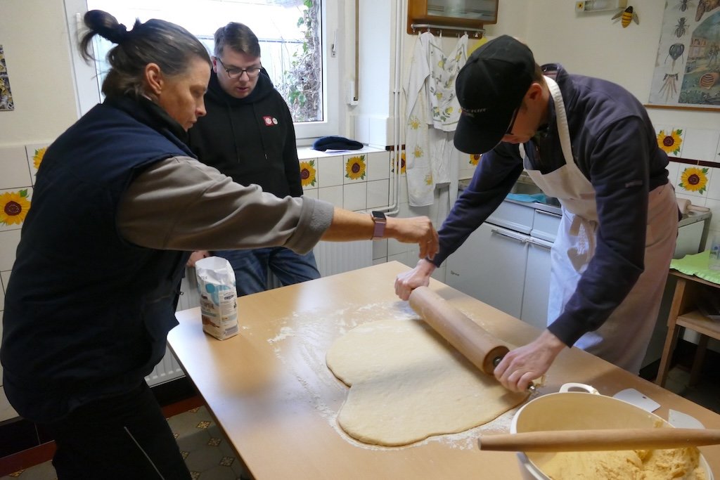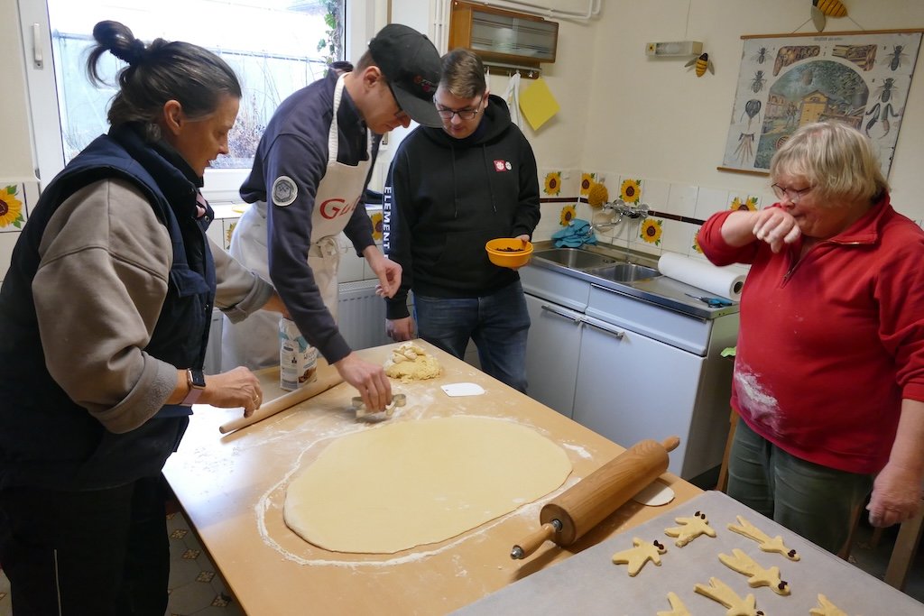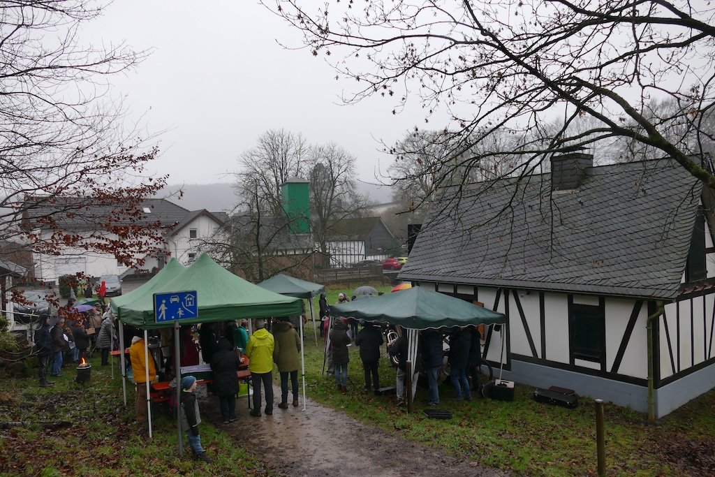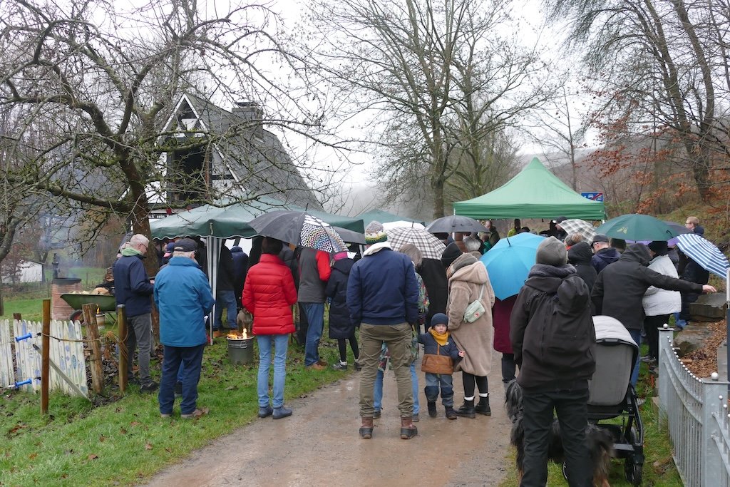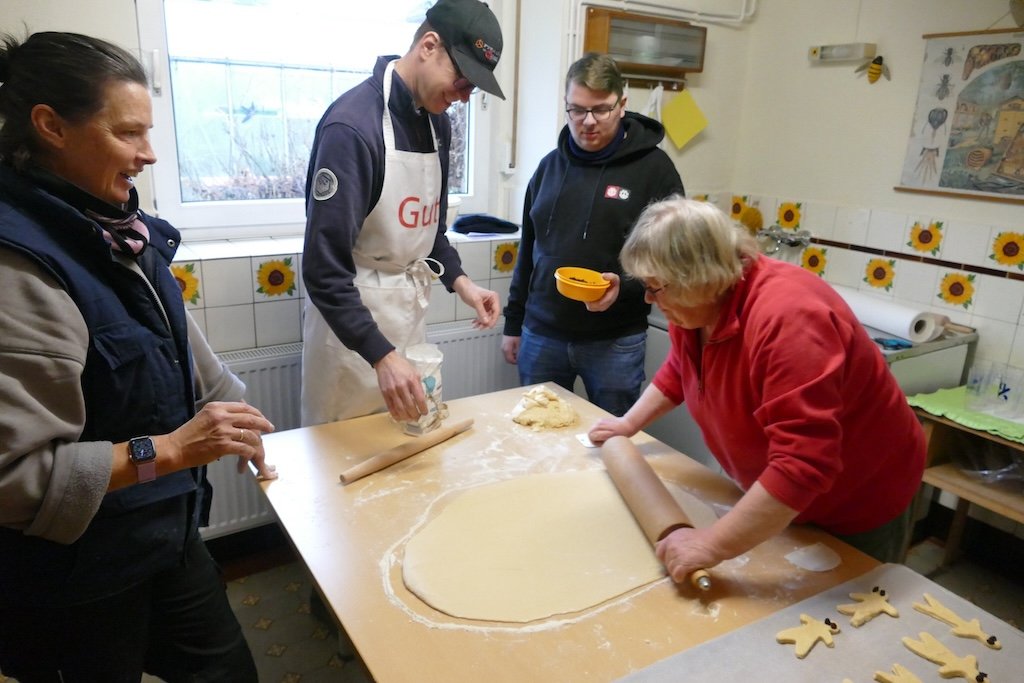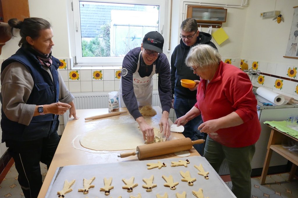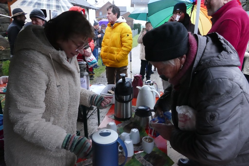 Das am Vortag von den Helferinnen und Helfern des Arbeitskreises in „Schusdersch“ Küche und im Backes „fabrizierte“ Spritzgebäck fand während und nach dem Konzert dankbare Abnehmer. Ebenso trafen die am Adventsonntag aus guten Zutaten frisch gebackenen Stutenmänner den Geschmack des Publikums. Mit Kaffee, heißem Kakao und Apfelpunsch gut versorgt, konnte selbst der Nieselregen der Veranstaltung keinen Abbruch tun. Die für Plätzchen, Kuchen und Kaffee eingegangenen Spenden werden wieder einem sozialen Zweck zugeführt. Selbstgebackene Plätzchen aus dem Backes erhielten auch die älteren Mitbürger im Dorf – sie wurden ihnen an den darauffolgenden Tagen zugestellt.